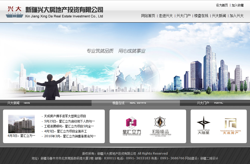 新疆興大房地產投資有限公司成立于2010年12月13日,是一家主營房地產項目投資、開發、經營的專業地產投資開發公司。2010年,在新疆大陸星房地產開發有限公司與新疆天成房地產開發有限公司兩家房地產開發公司的聯合倡導下,在源自于兩家房產公司已建、在建、擬建項目的基礎上,為了企業良性持續的長遠發展,重新整合資源,在積極引入新的資金及集團企業支持的情況下,通過成立新疆興大房地產投資有限公司,從而實現對兩家房產開發公司的控股及資金注入。