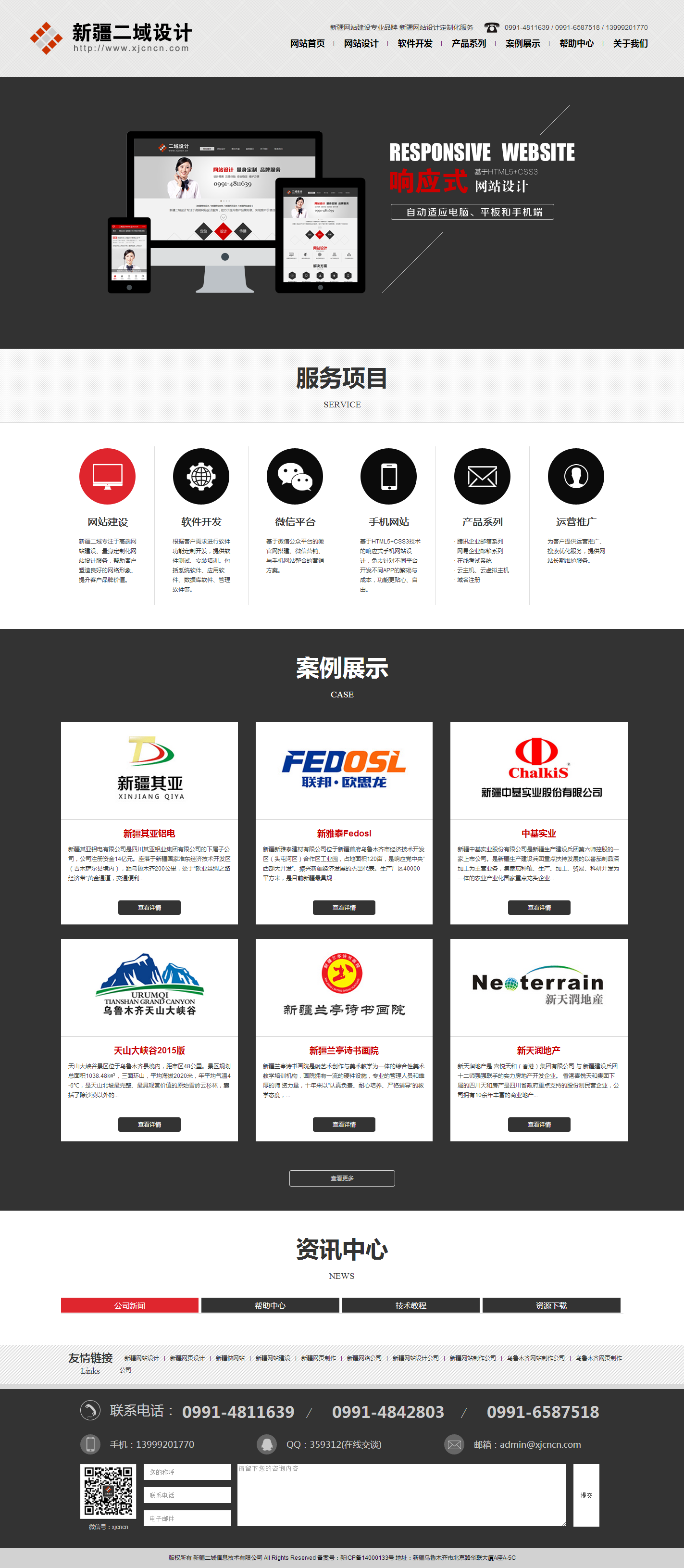 2016年新年到來的時候,歷經多個版本修改的新疆二域設計官網終于發布新版了!本次改版采用紅與黑色調,扁平化風格,前端采用HTML5和CSS3響應式布局,自動適應平板和手機屏幕瀏覽,以滿足移動互聯網時代發展的要求。