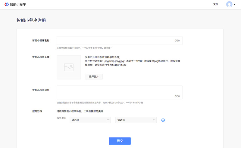 入駐申請需要提交企業公司、政府、媒體、其他組織的名稱,所屬行業,以及產品類別。在給小程序命名時,建議使用您擁有權利的品牌詞或機構名稱,便于用戶搜索查找。以 品牌詞+服務特效(服務地域/服務特色)或產品功能的形式等組合,盡可能與所從事業務、或站點名稱一致或相關,易于用戶辨識、聯想到對應的機構。具體命名規范請查看命名文檔: