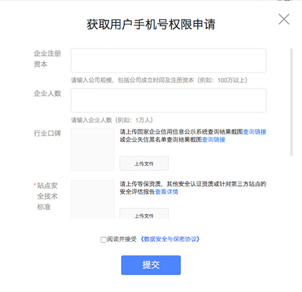 審核過后,可通過如下操作獲取用戶手機號權限: